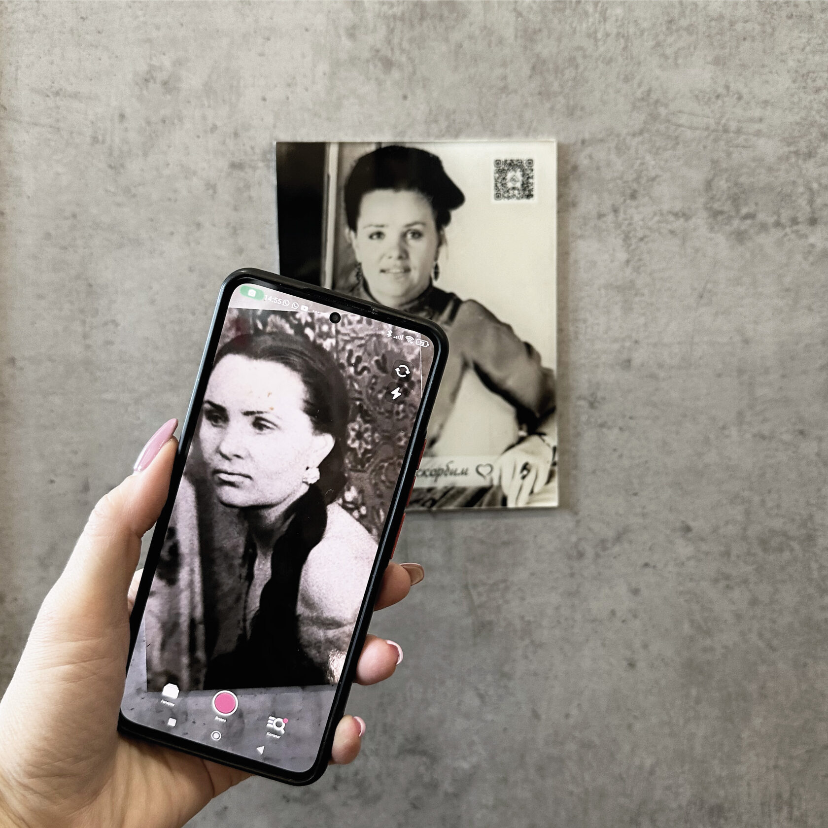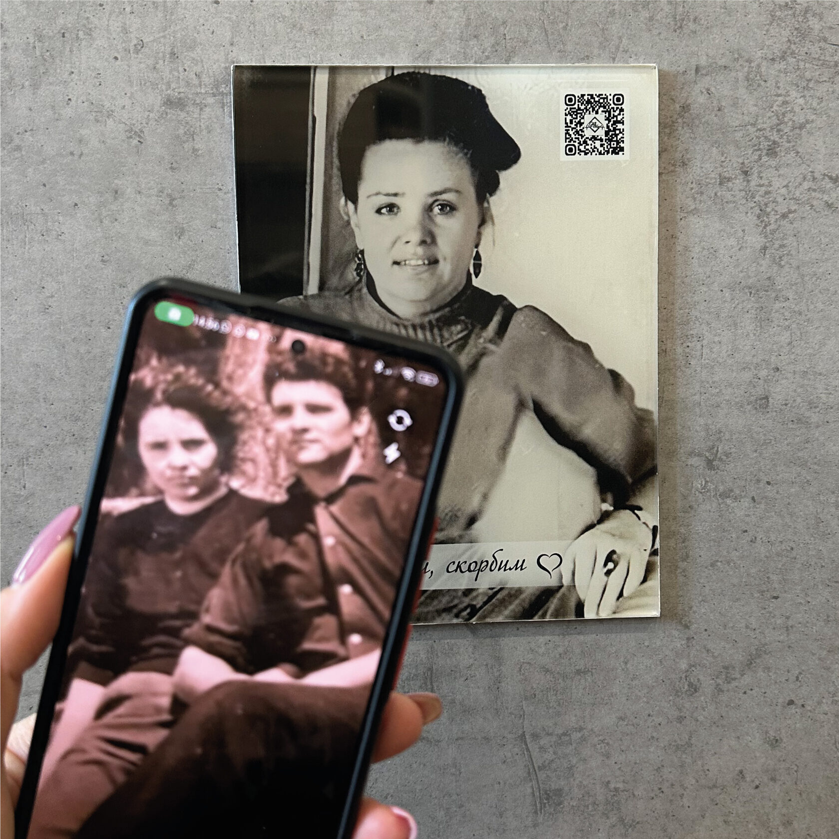 Память о хорошем, близком человеке можно запечатлеть на настоящем стекле в виде фотографии, которая оживает при наведении на нее телефона. Для этого используется технология дополненной реальности (AR технология). После считывания QR кода и при наведении на фото на стекле телефоном появится запоминающие видео, которое мы для Вас подготовим из Вашего фото/видео материала. Когда Вы придете почтить память усопшего на кладбище, могилку наведите телефон на стекло с фото, закрепленное на памятнике, и оно оживет. Пока мы помним, наши близкие живы!